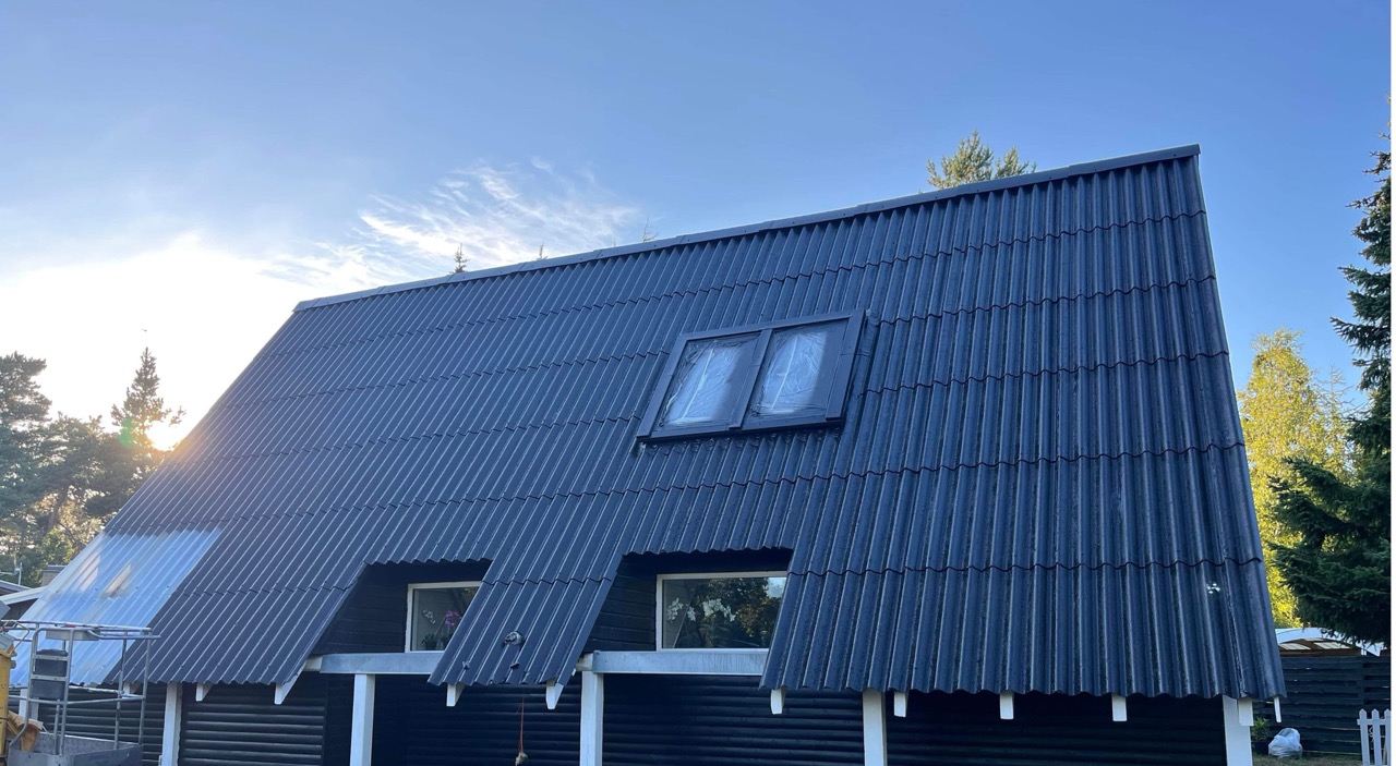 Taget males 2 gange for at sikre det perfekte resultat. Kanterne på taget males med pensel og rulle, og flader males med sprøjteanlæg, som holdes tæt på taget. Vores erfaring spiller en stor rolle i at sikre det perfekte resultat.